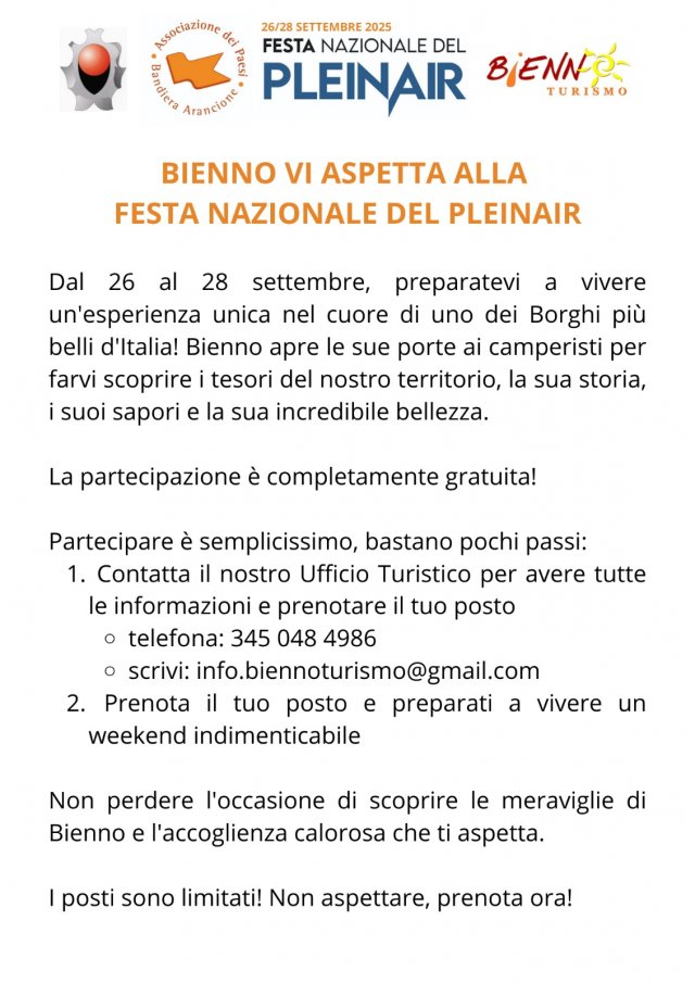 PLEASE NOTE THAT THE BIENNO CAMPER AREA WILL REMAIN CLOSED TO THE PUBLIC NOT REGISTERED FOR THE EVENT TO ALLOW IT TO CONDUCT CORRECTLY.